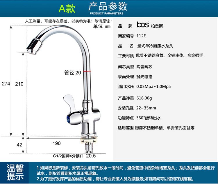 • 商品名稱:單冷立式廚房龍頭