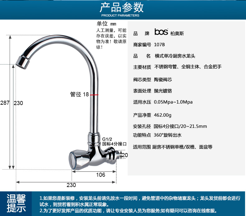 單冷橫式廚房龍頭
