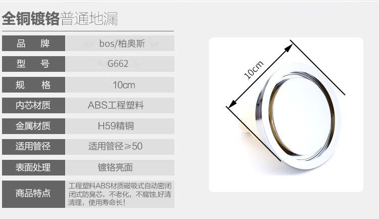 隱形銅地漏 圓10cm